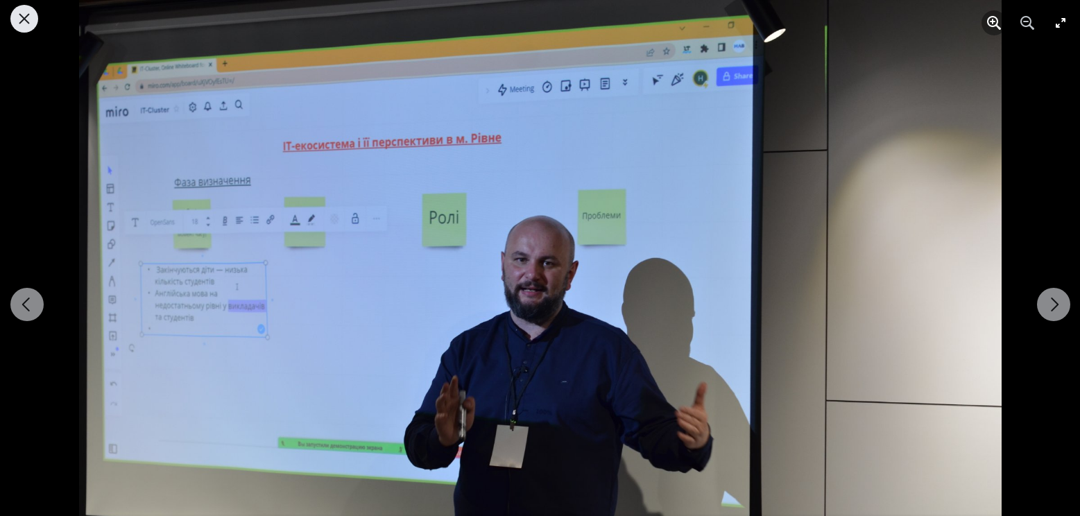 Вів зустріч Сергій Веретюк - керівник Noosphere Engineering School, який вдало організував як самі представлення закладів освіти, так і підвів їх до потреб бізнесу з урахуванням запитів та ризиків через фасилітовану активну дискусію в форматі design thinking. Ми отримали домашнє завдання висвітлити найбільш критичні питання та запропонувати шляхи їх вирішення, з чим вже успішно справились. Сподіваємось, що наступні зустрічі відбудуться у закладах освіти із обговоренням освітніх програм, які зацікавили рівненські ІТ-компанії за участю основних учасників освітнього процесу та майбутніх працівників цих компаній – студентів.